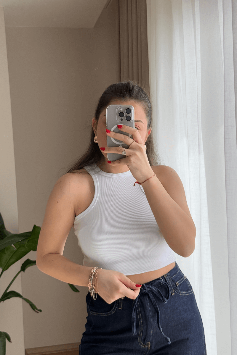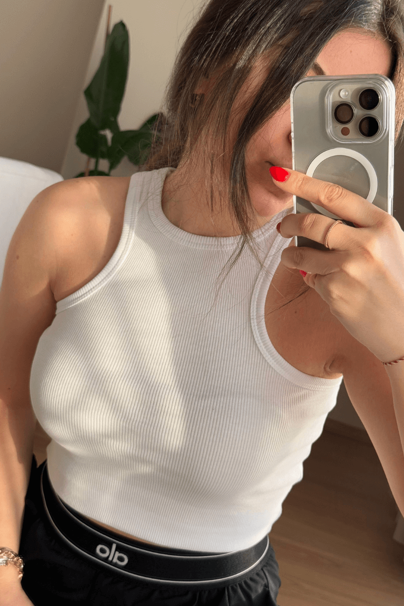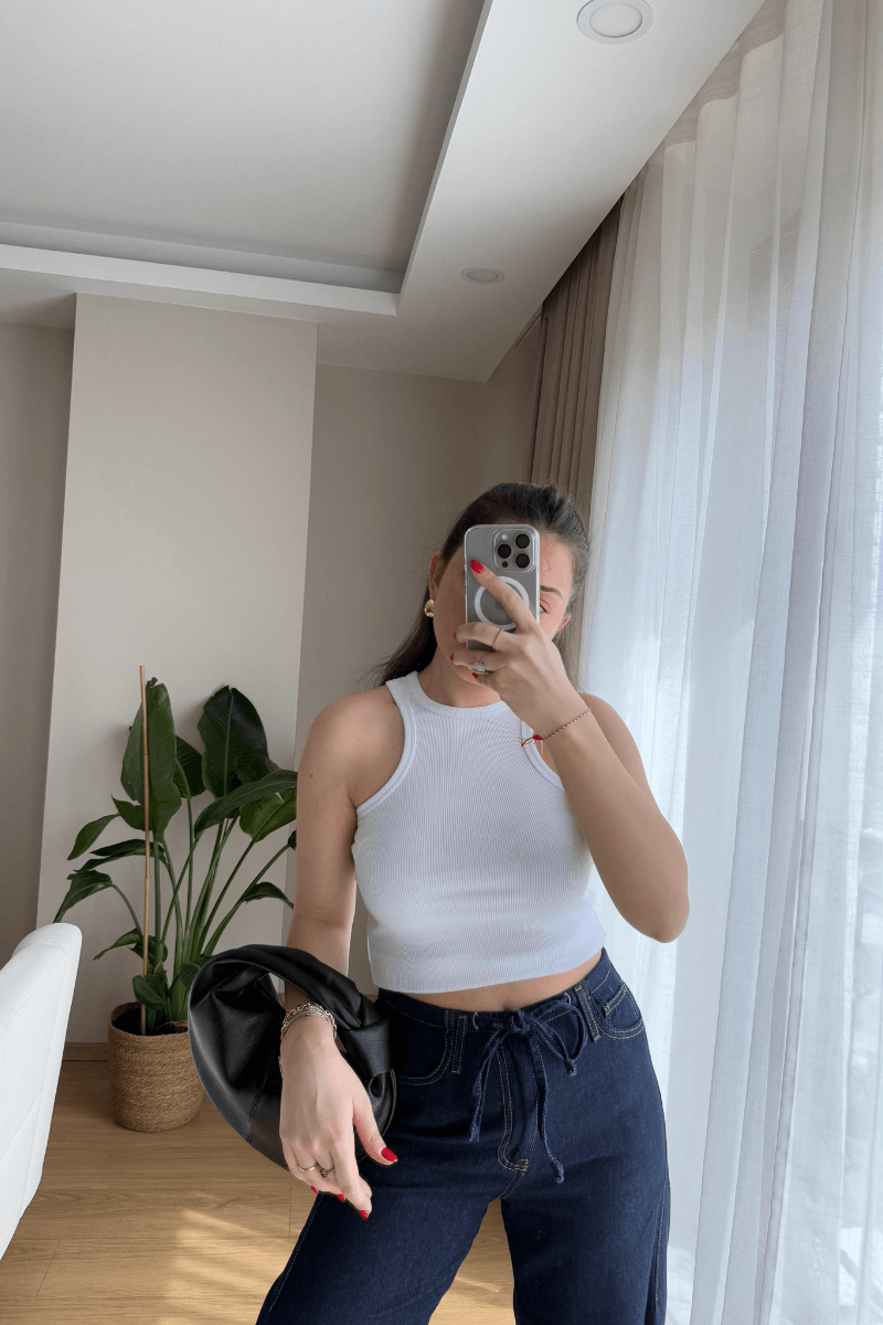 %100 Pamuk Beyaz Halter Yaka Fitilli Atlet