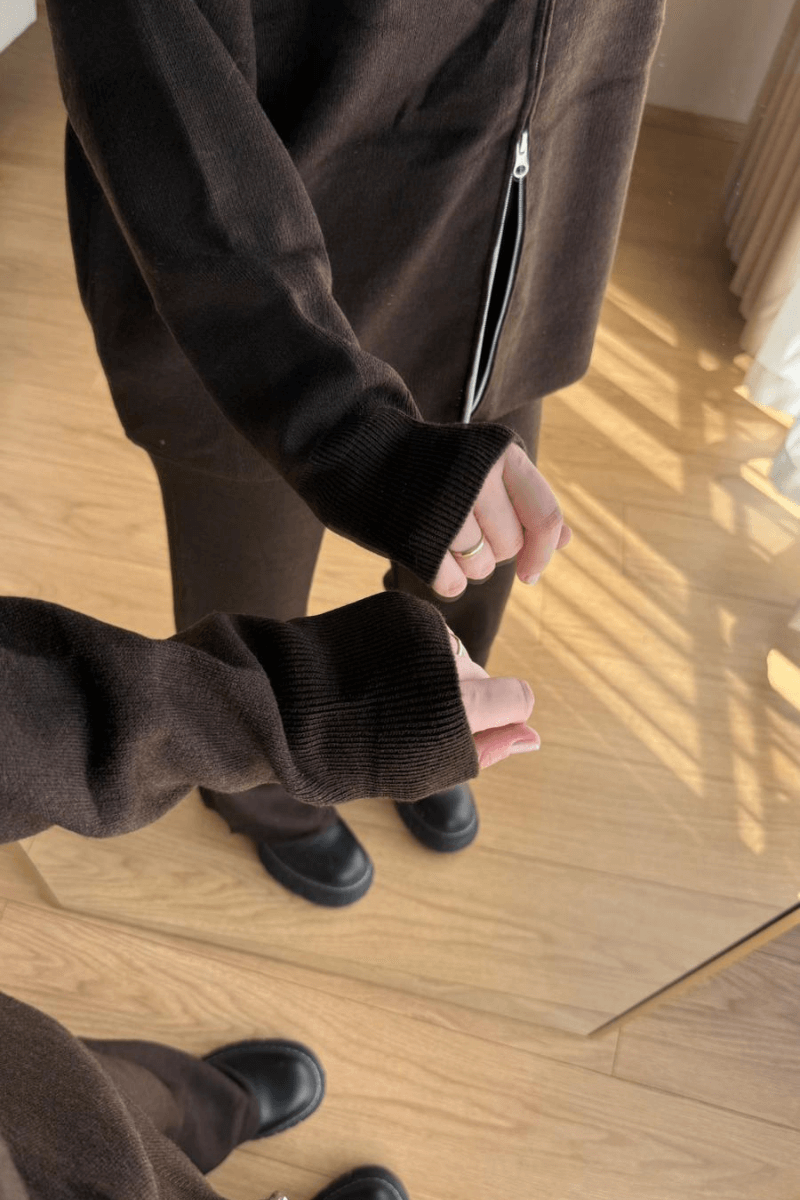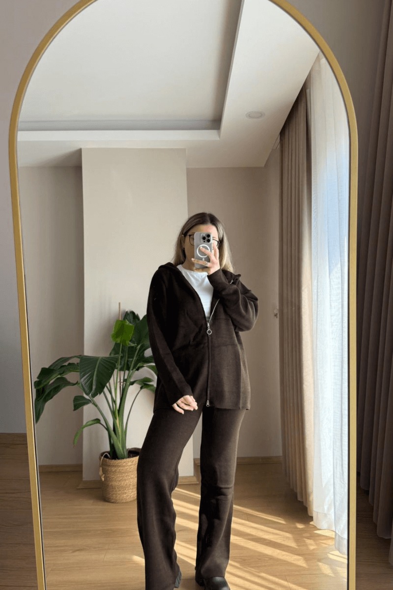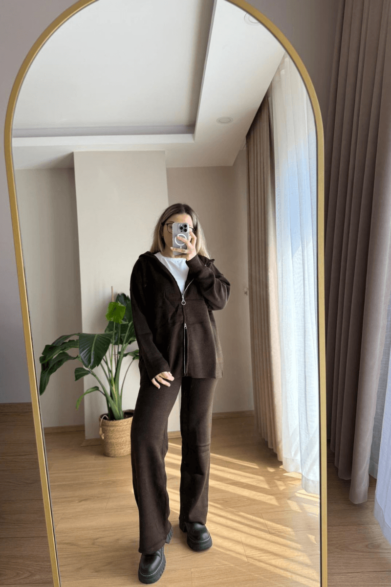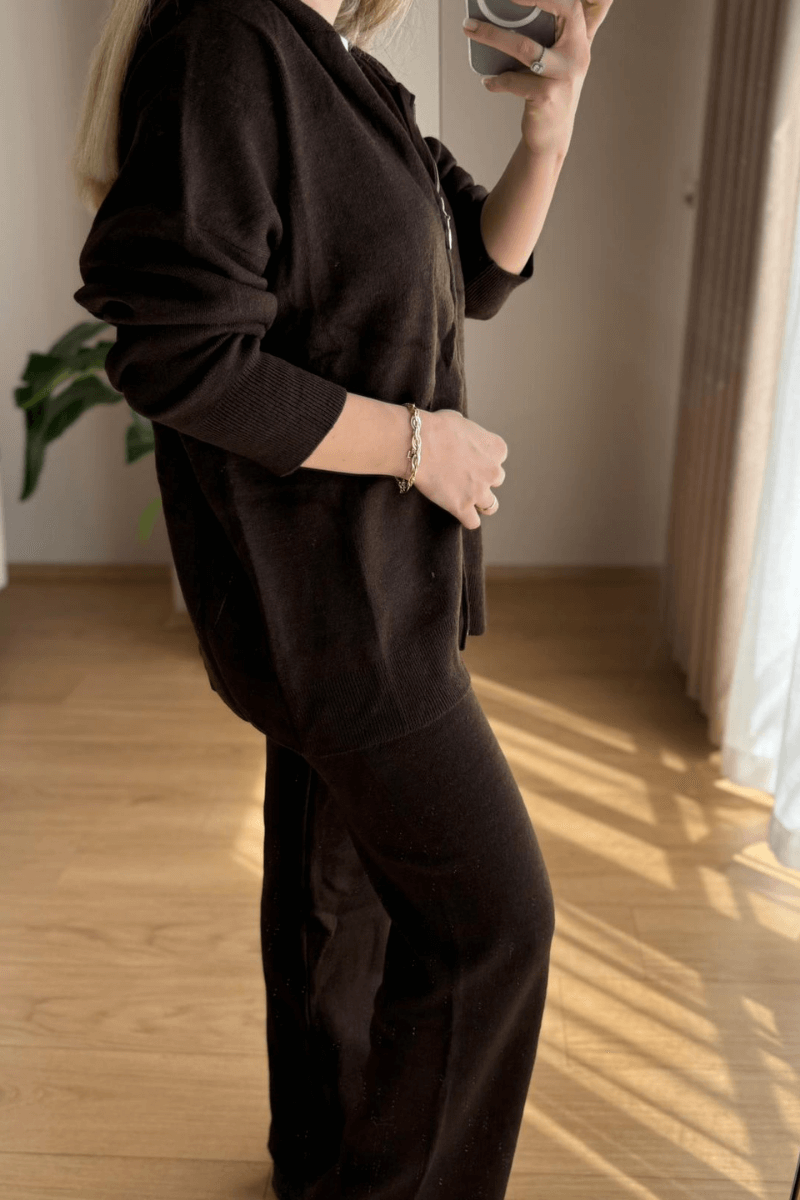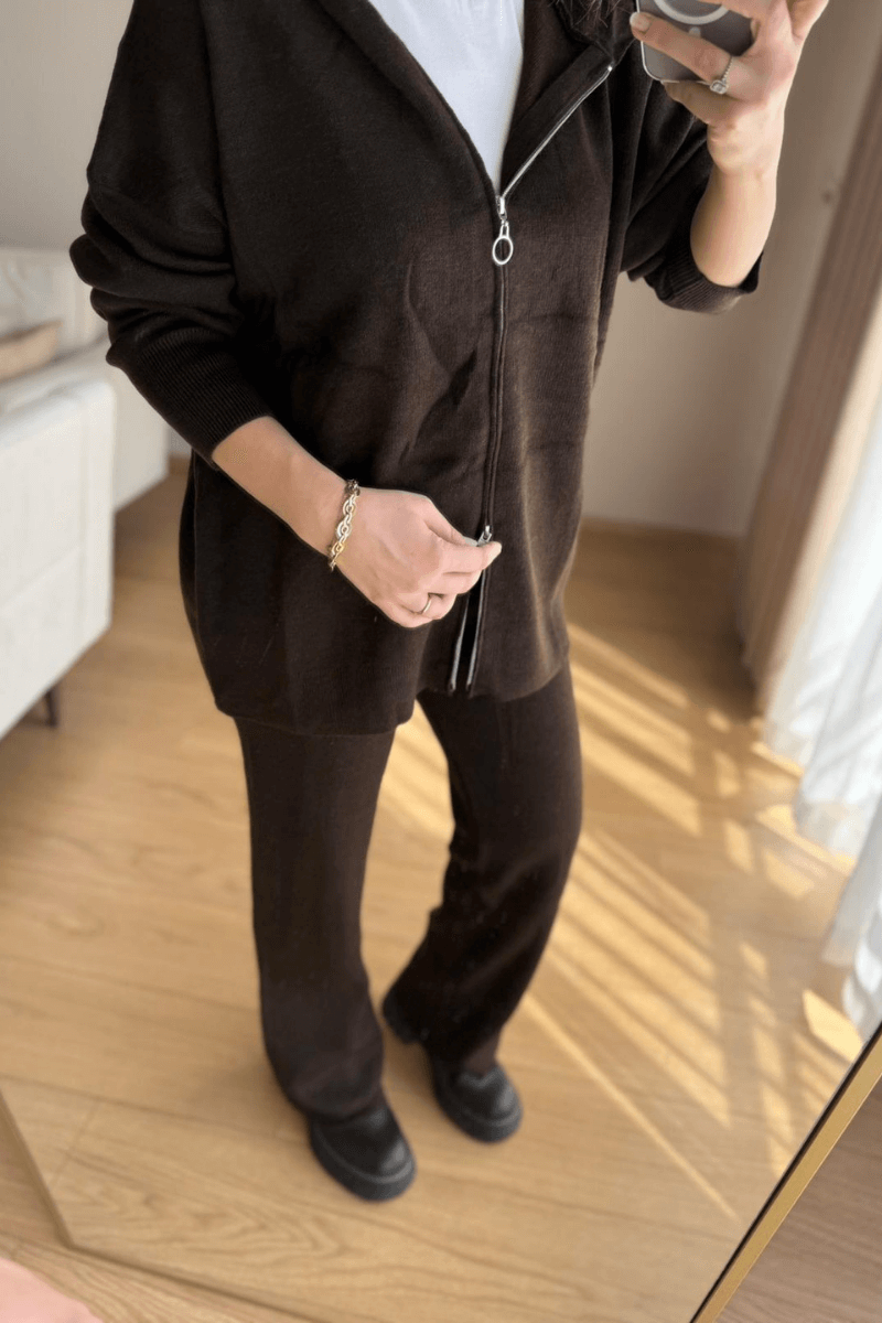 Acı Kahve Triko Hırkalı Takım