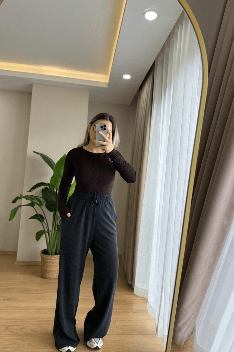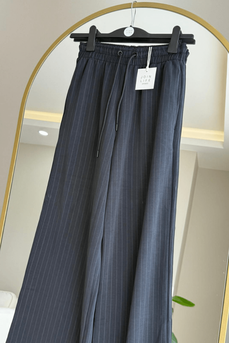 Antrasit tonlarında, çizgili tasarımıyla dikkat çeken bu eşofman/pantolon, bol kesimi ve likralı kumaşıyla konfor ve şıklığı bir arada sunuyor. Rahatlığı ve cool görünümüyle günlük kullanıma ideal bir tercih.