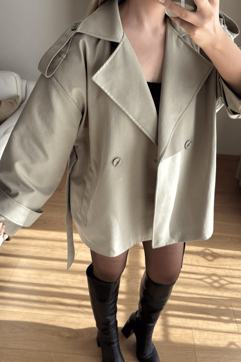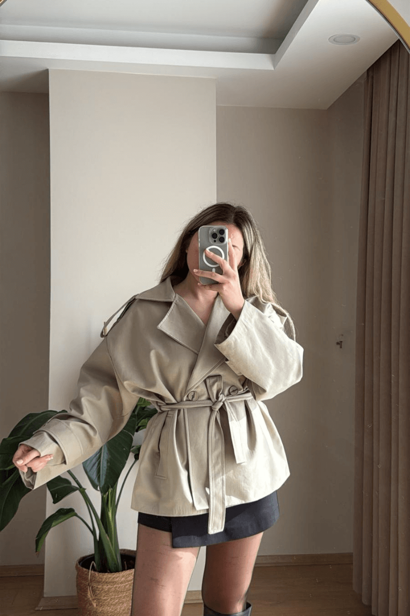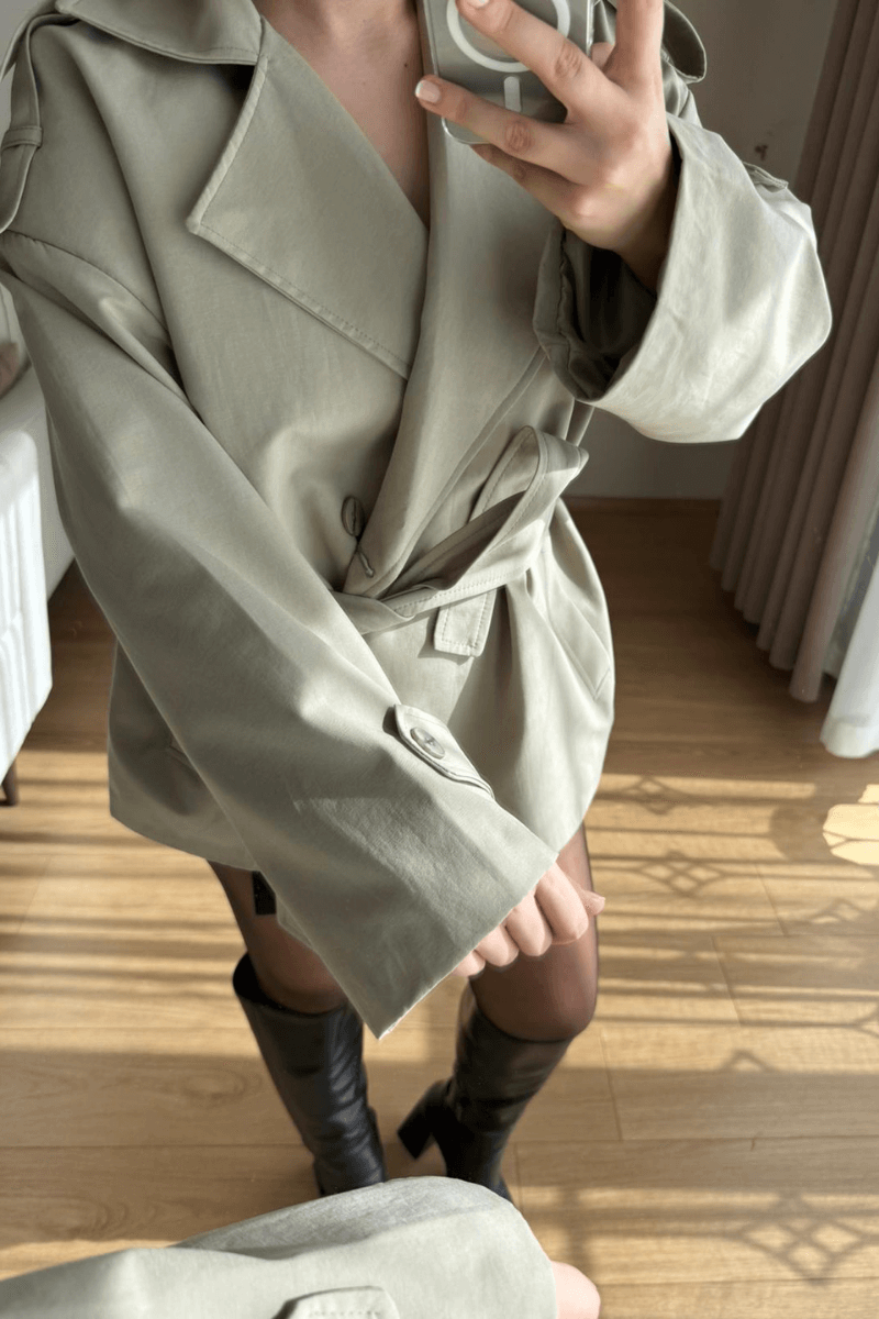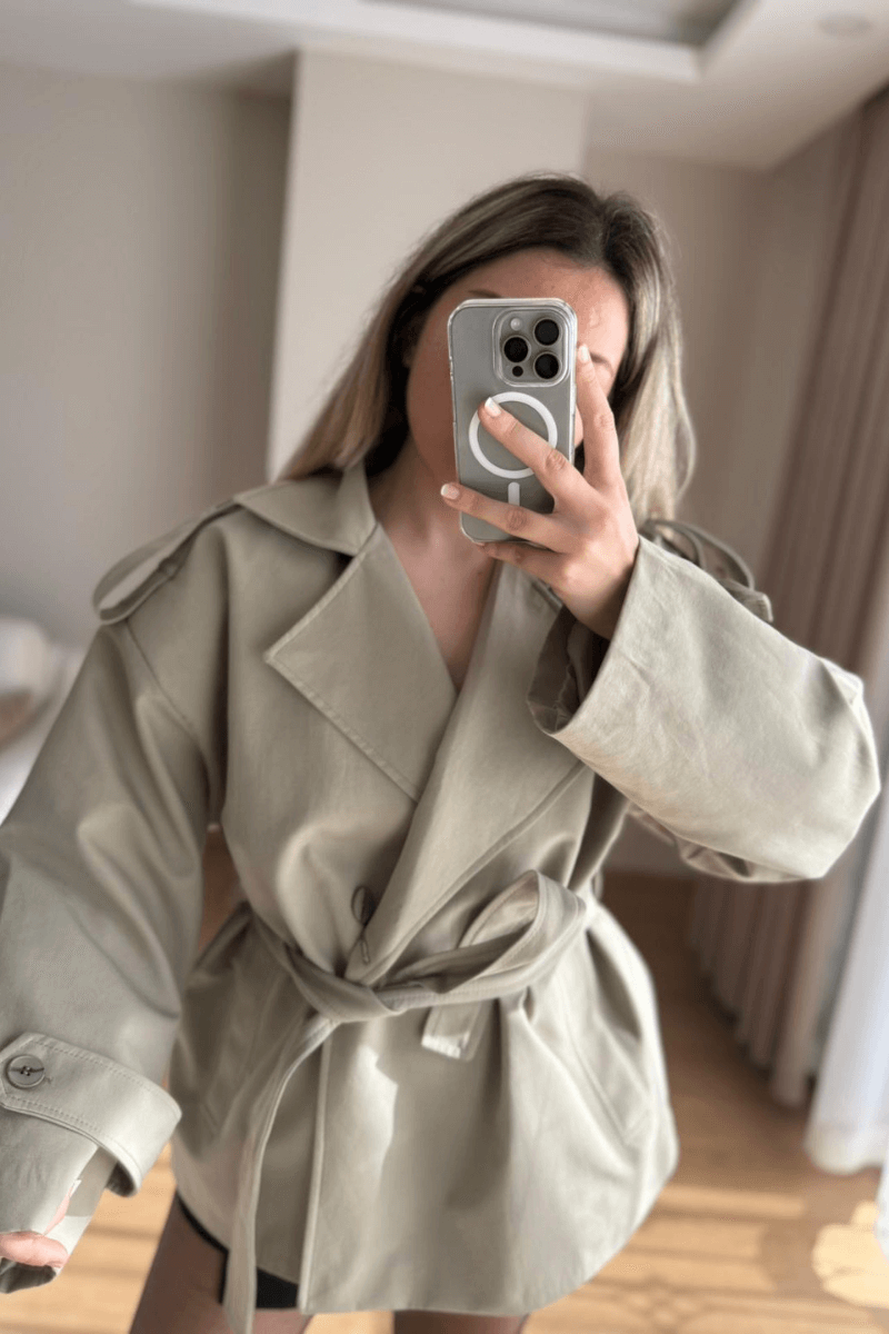 Bu ara boy adaçayı yeşili rengi trençkot, şık ve spor tarzı sevenler için ideal! Rahat kesimi ve modern tasarımıyla her mevsimde kullanabileceğin bir parça. Klasik trençkotun şıklığıyla, spor tarzın rahatlığını bir arada sunuyor. Her duruma uygun ve tarzını yansıtan bir seçim.