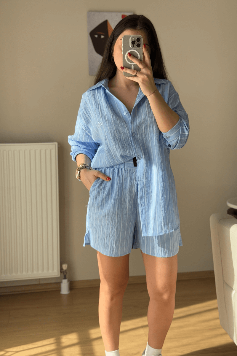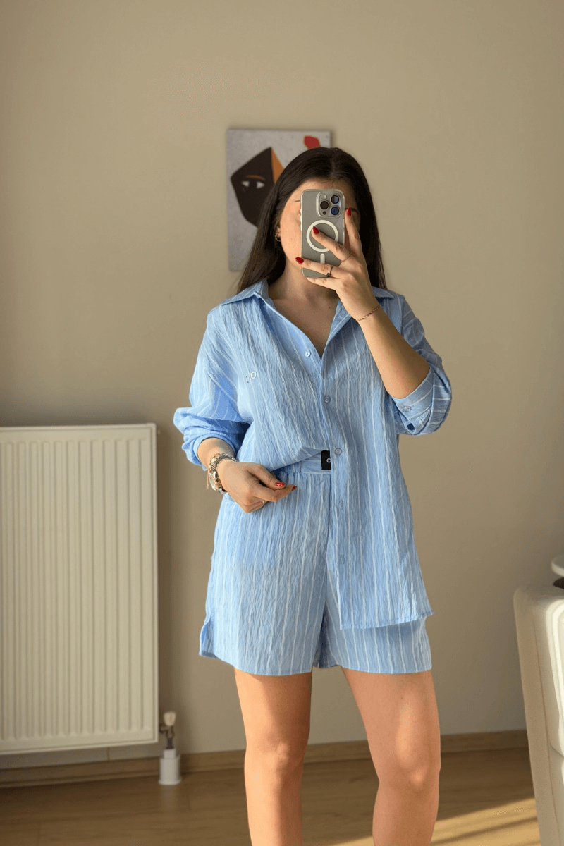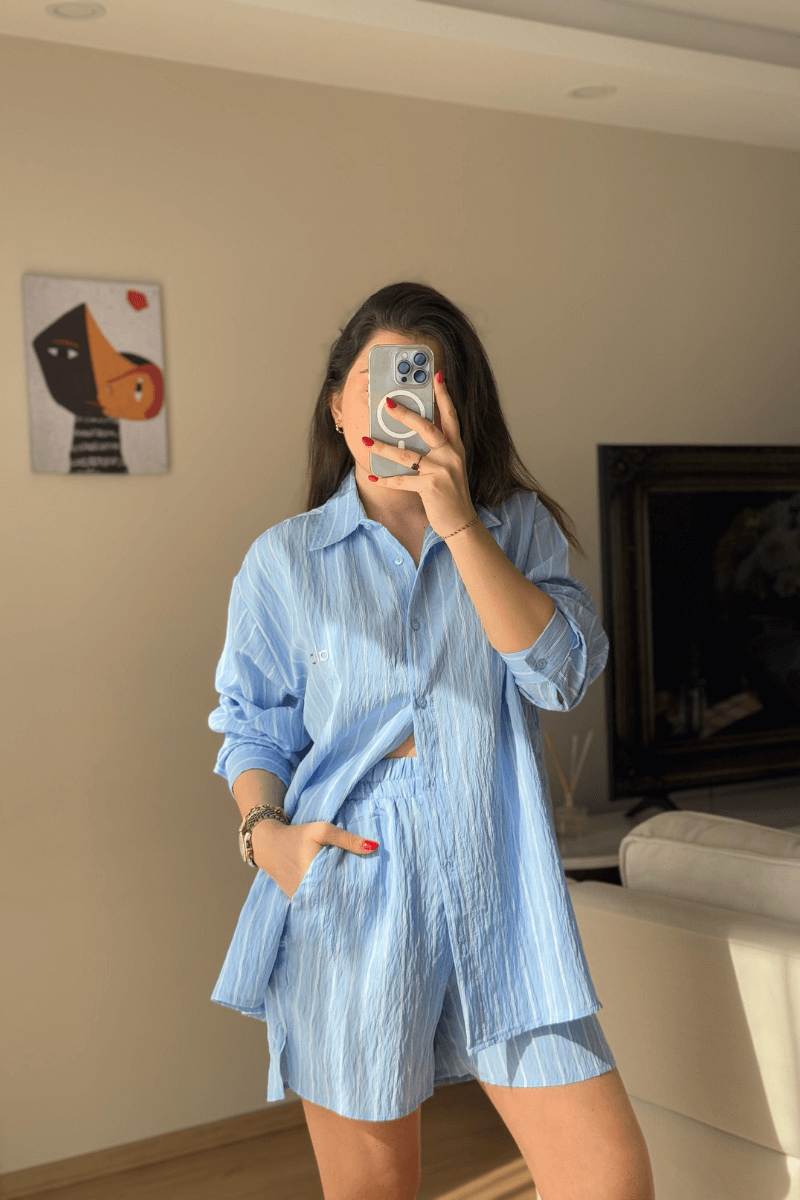 BEBE MAVİSİ, UZUN KOLLU, ÇİZGİLİ, BELİ LASTİKLİ, CEPLİ