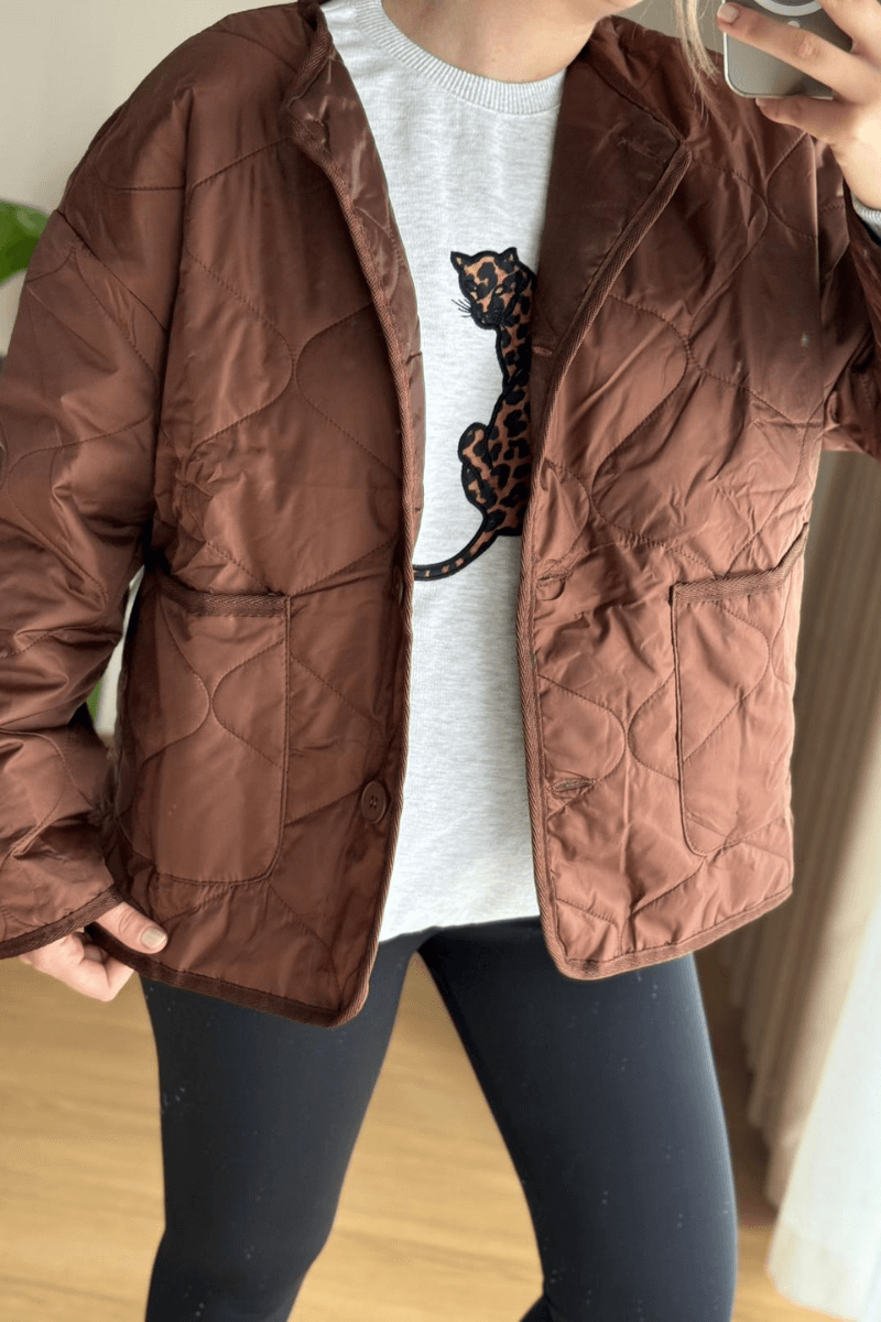 Kahverengi kapitone ceket, spor şıklığı ve tarzı bir arada sunar. Yeni sezon trendlerine uygun, cool ve rahat kesimi ile günlük kullanıma idealdir. Soğuk havalarda sıcak tutarken, stil sahibi görünmenizi sağlar. Modern ve fonksiyonel tasarımıyla sezonun favorisi.