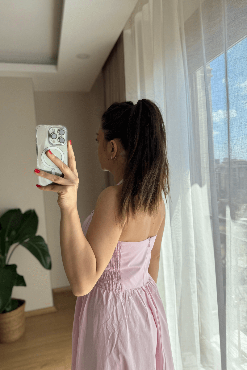 Pembe Boyundan Askılı Elbise