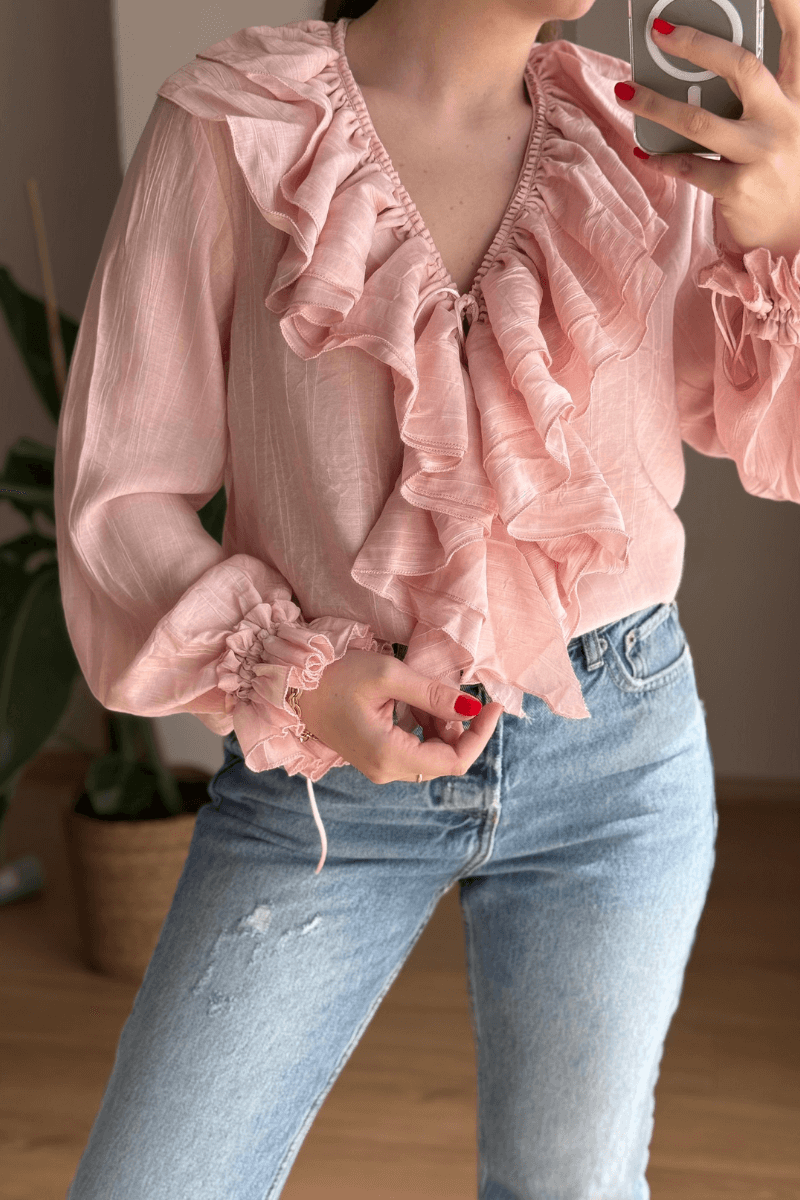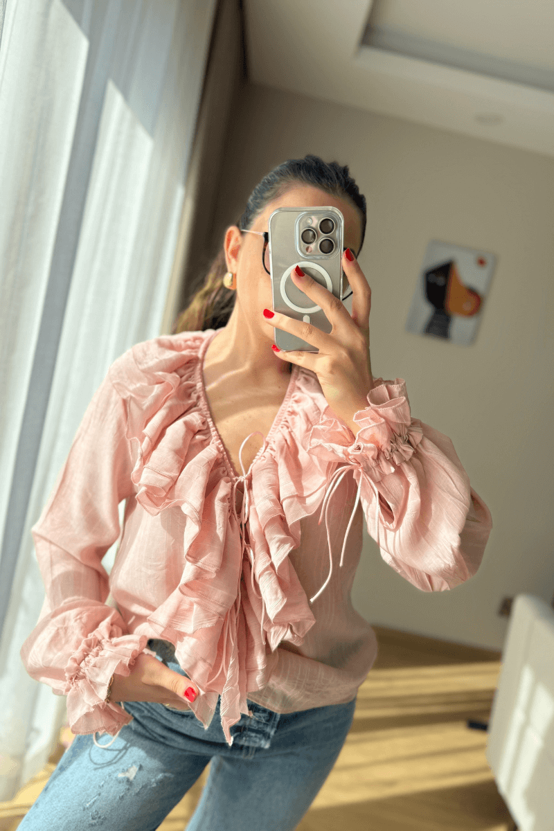 KOL VE YAKASI BÜZGÜLÜ-FIRFIR DETAYLI