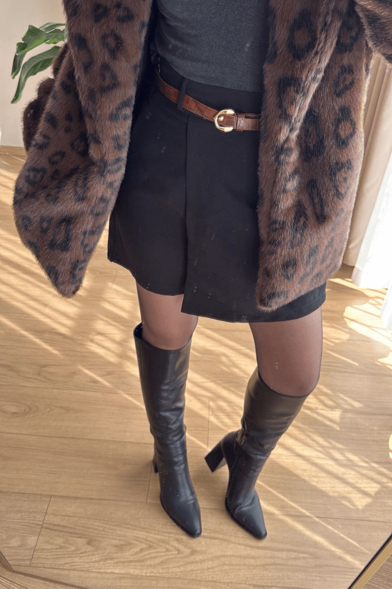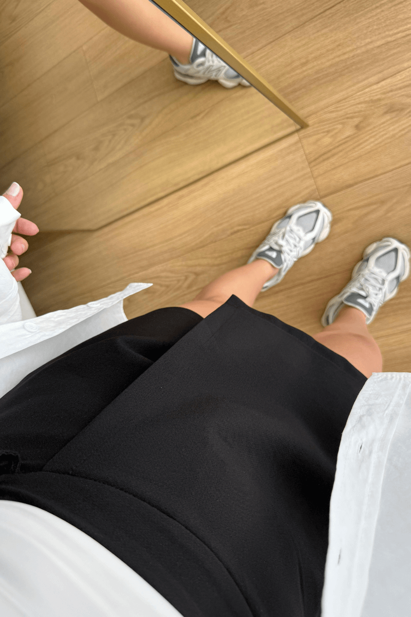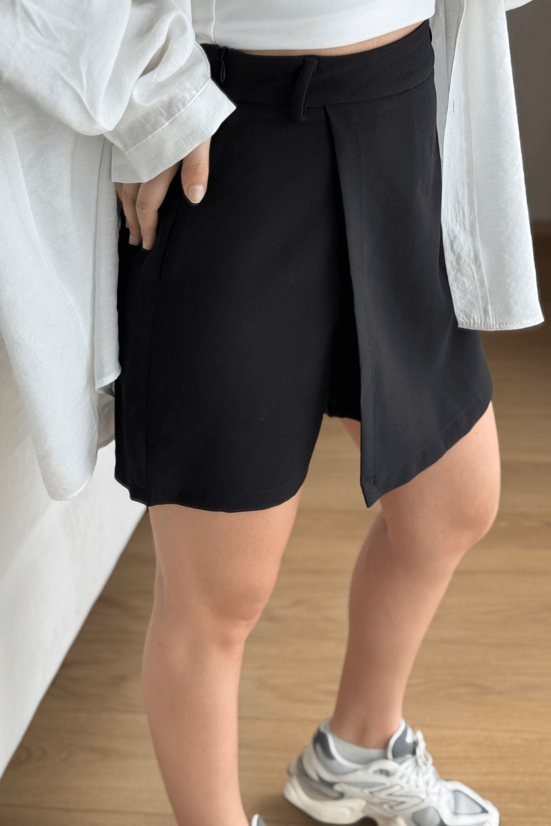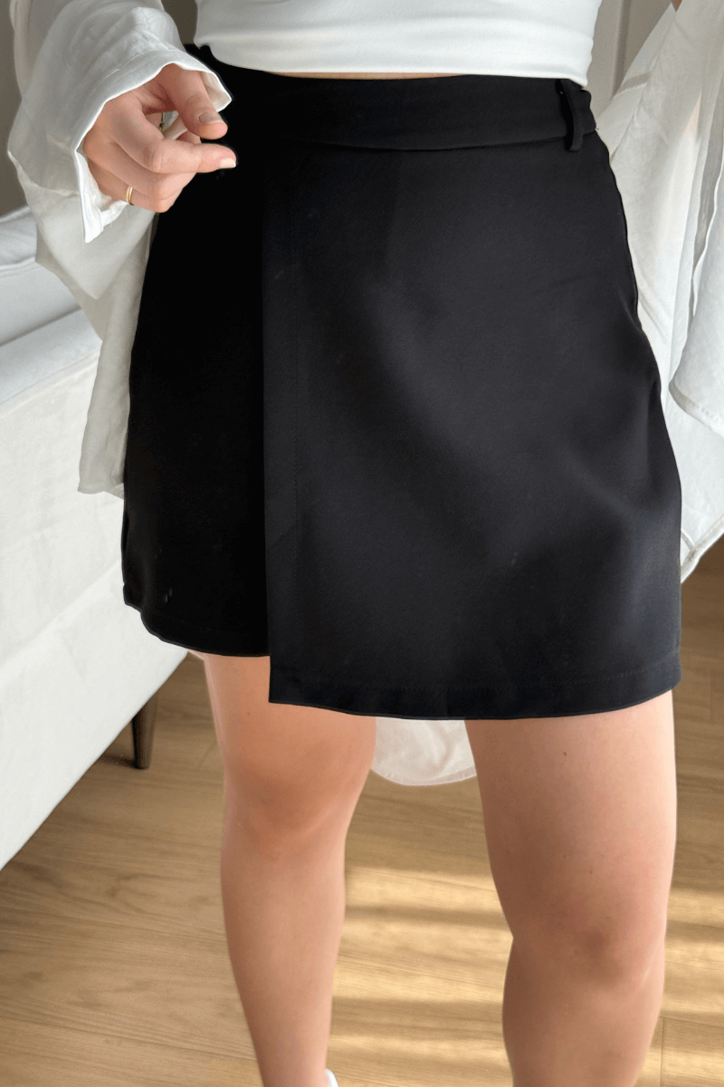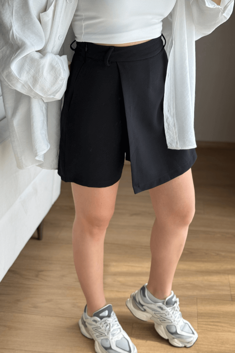 Siyah Premium Kemerli Şort Etek(Kemer Dahil)