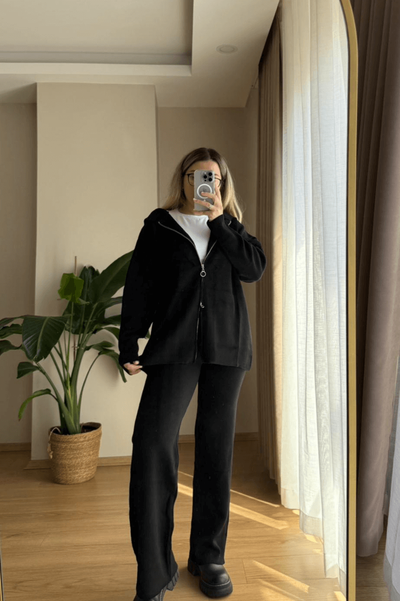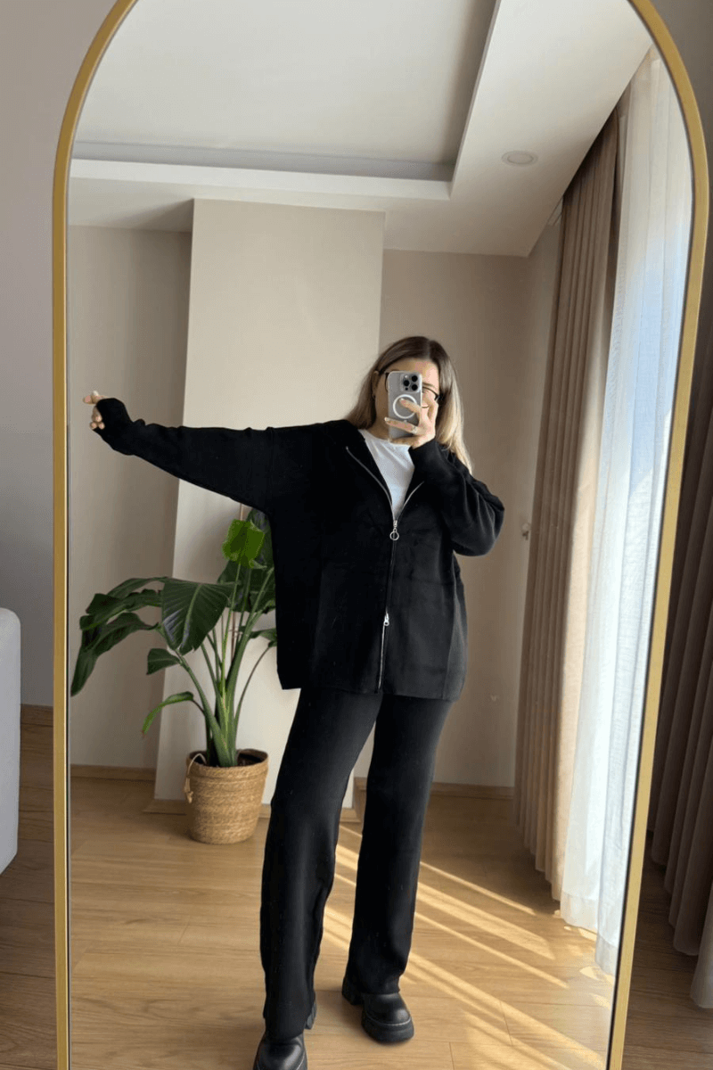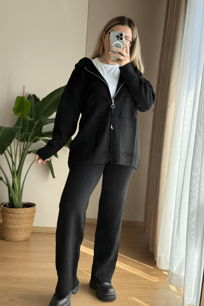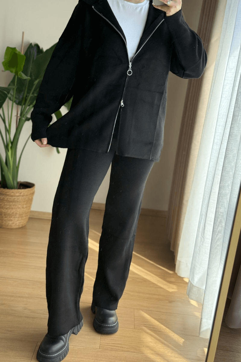 Siyah Triko Hırkalı Takım