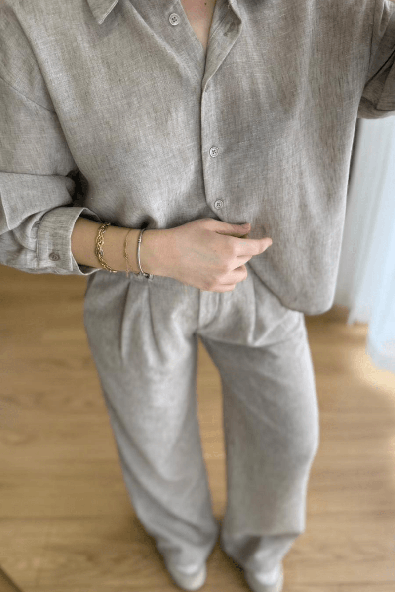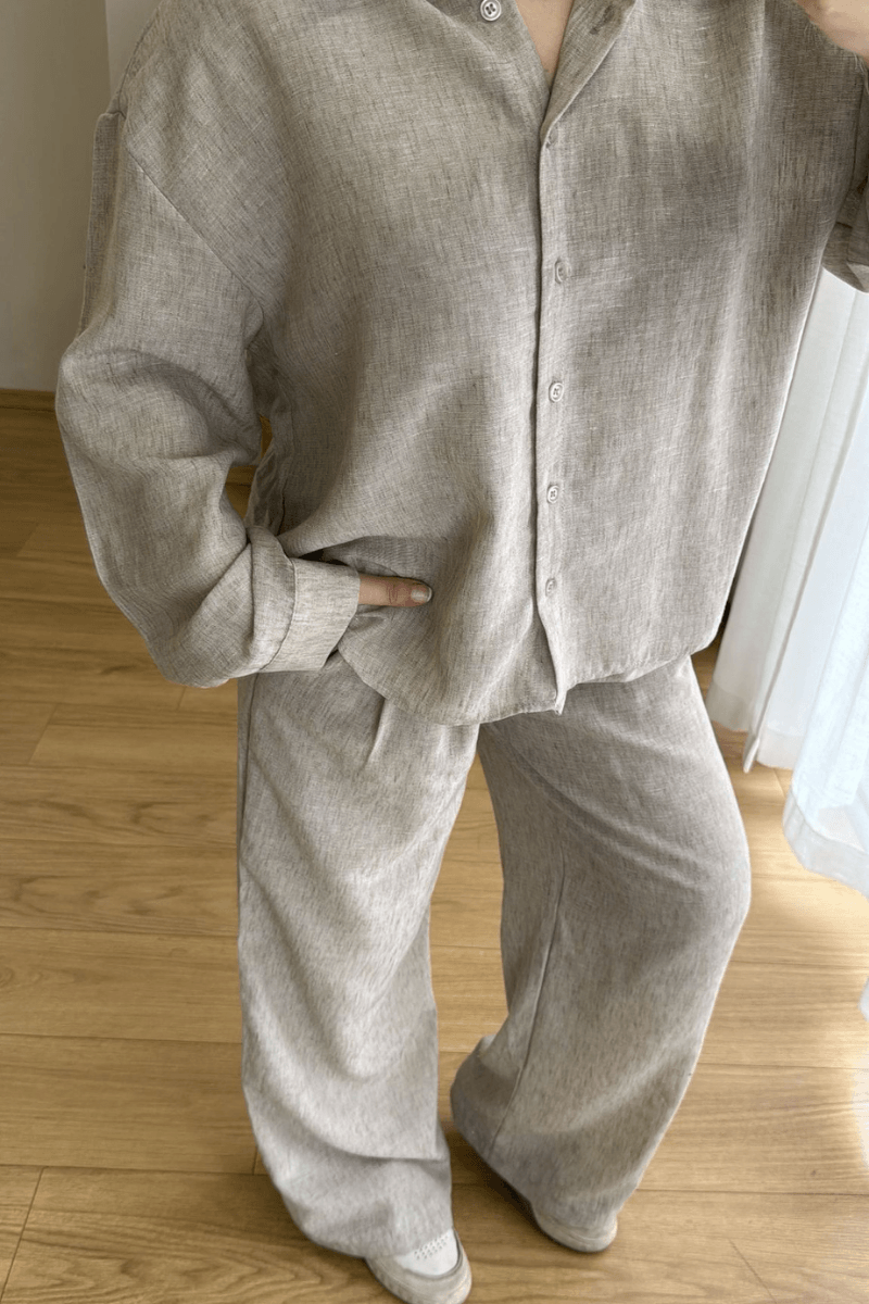 CEPLİ PANTOLON, BOL KESİM, RAHAT, KAŞINDIRMAYAN KETEN, ÜSTÜ BOL KESİM GÖMLEK, OVERSİZE