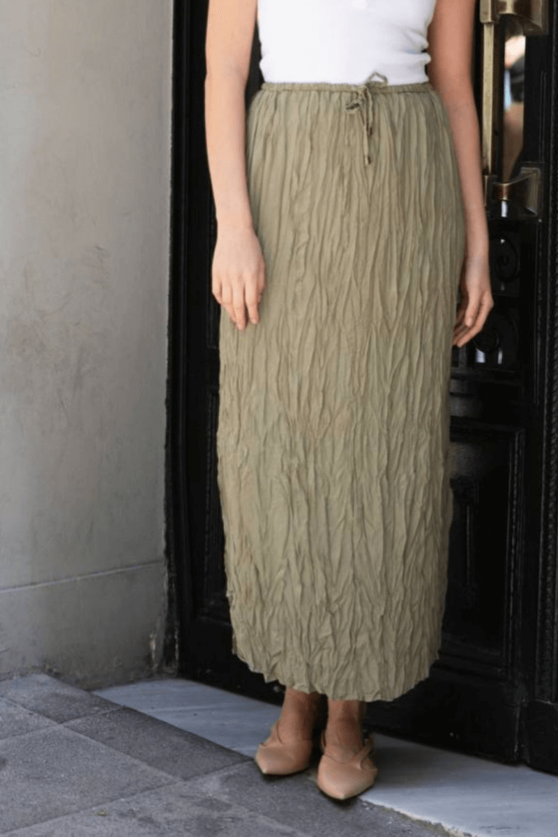 Bu yazlık etek, şık haki rengi ve premium biyeli detayıyla dikkat çekiyor. Beli lastikli ve rahat iç astarıyla, hem şıklığı hem de konforu bir arada sunuyor. Yaz aylarında günlük kullanım için ideal bir seçim.